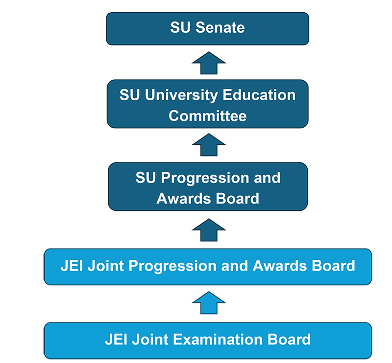 Such exit qualifications shall be approved by the JEI examination boards and JEI Joint Progression and Awards Board and confirmed by the SU Progression and Awards Board.
